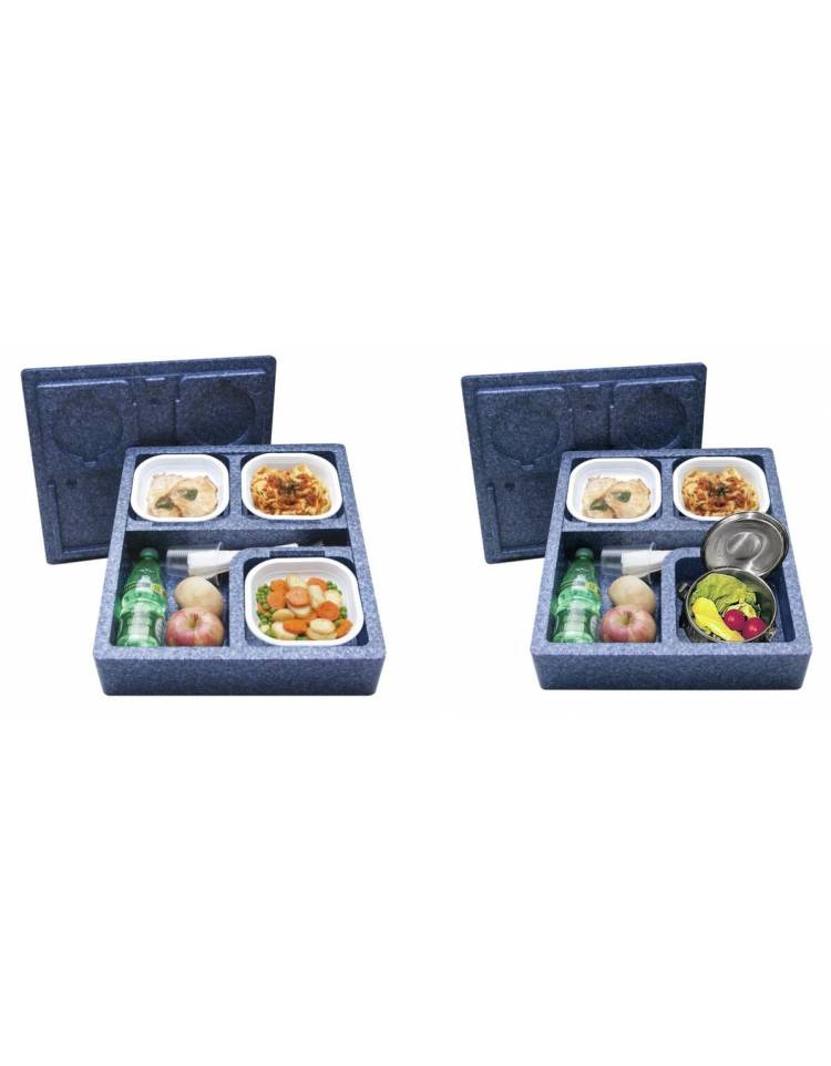 La struttura interna suddivisa in alveoli, consente il trasporto di vivande, bevande e stoviglie. I tre alveoli possono alloggiare contemporaneamente alimenti caldi o refrigerati grazie alla particolare struttura del coperchio che chiude ermeticamente ogni singolo comparto. Ogni alveolo può alloggiare: pietanze di diametro 120 mm con h. 60 mm; piattini in polipropilene misura 160x160 mm; vaschettine in alluminio misura 160x160 mm.