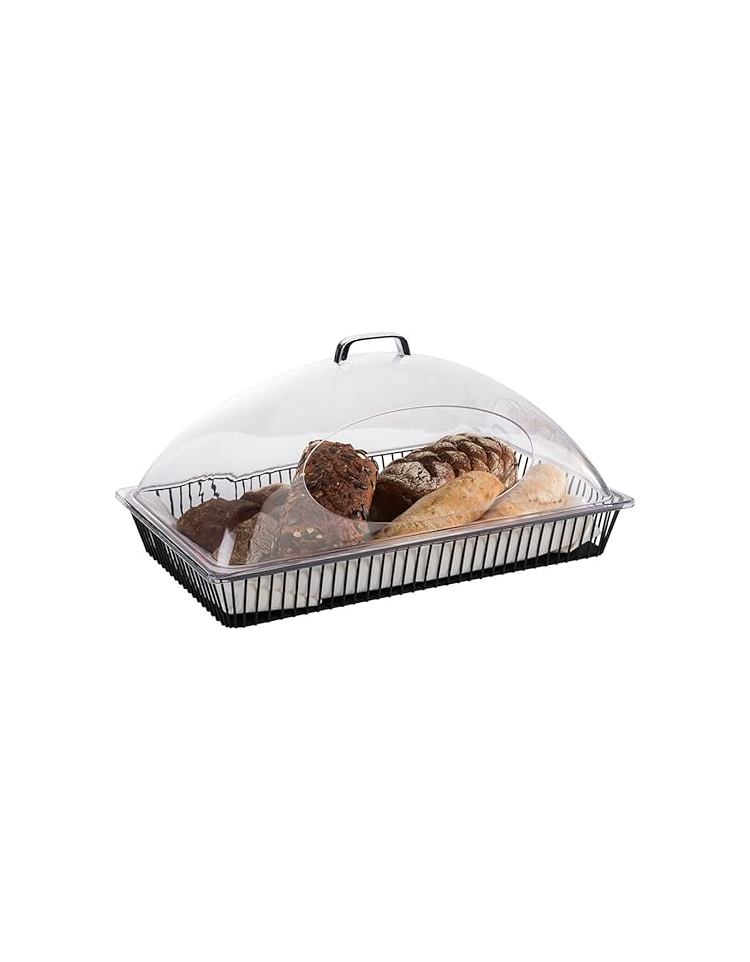 Coperchio rettangolare con apertura frontale in SAN trasparente per cesto pane DN51552. Resistente al lavaggio in lavastoviglie