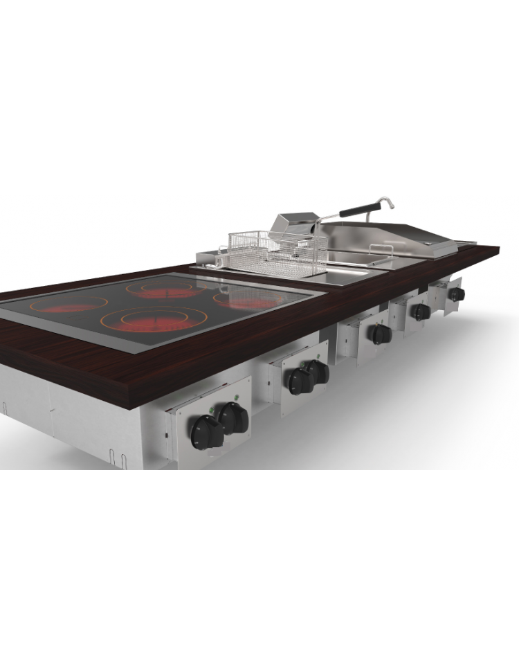 I drop-in sono apparecchiature che vengono inserite in piani di materiali diversi, purchè non infiammabili. I moduli possono essere installati in appoggio sul piano oppure a filo piano.