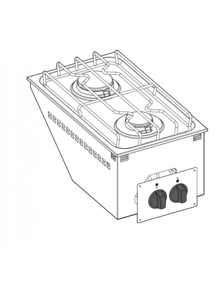Cucina a gas 2 fuochi da incasso, in acciaio Inox, con griglie in ghisa - potenza fuochi 1x3,3 kw + 1x5,2 kw - cm 35x60x30,7h