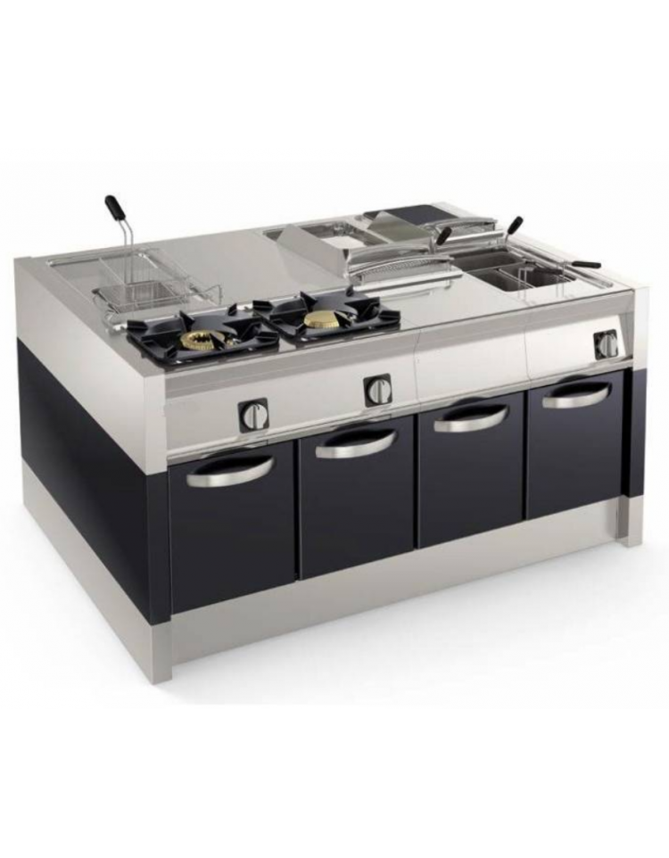 Linea di moduli speciali, caratterizzati dalla profondità di soli 45 cm, che si combinano perfettamente con la gamma profondità 90 dando luogo a isole di cottura più compatte e razionali.