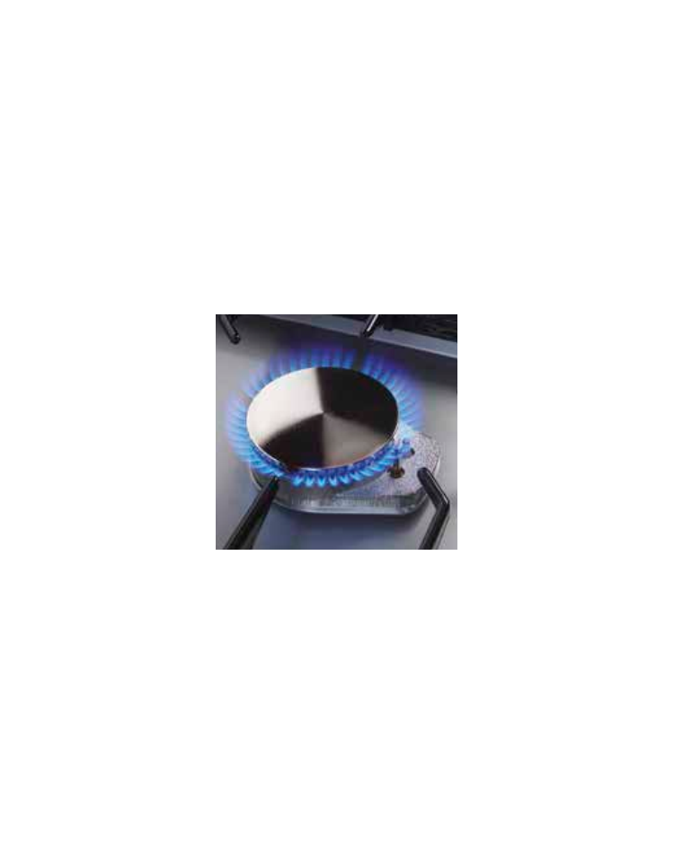 Bruciatori fissati al ripiano, in ghisa smaltata mono corona da 3,3 kW e 5,2 kW.