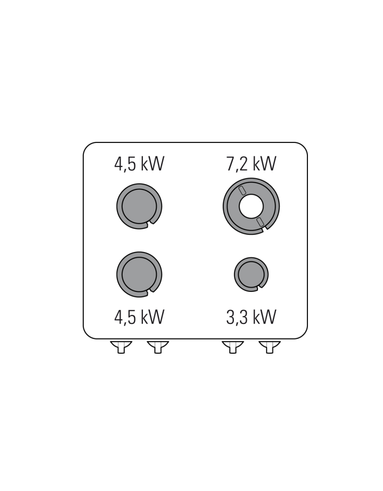 Potenza dei fuochi aperti [n°- kW]1x7,2+1x3,3+2x4,5