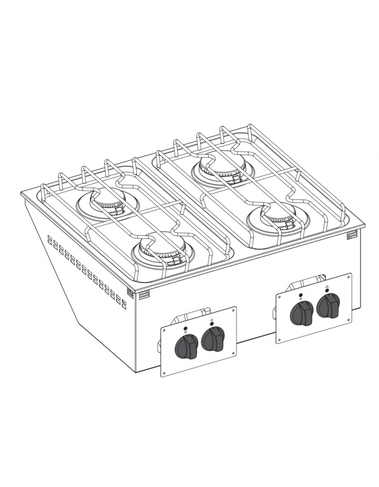 Cucina a gas 4 fuochi da incasso, in acciaio Inox, con griglie in ghisa - potenza fuochi 2x3,3 kw + 2x5,2 kw - cm 70x60x30,7h