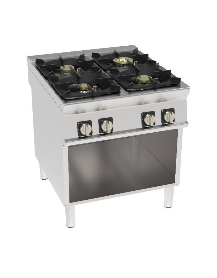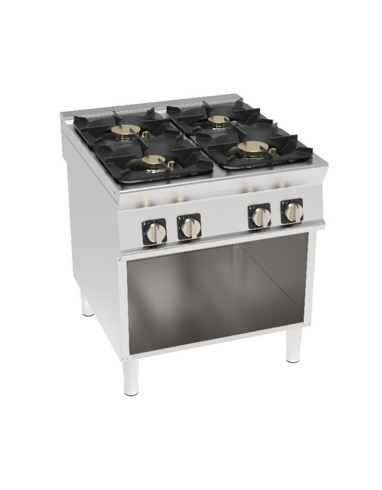Piano cottura a gas 4 fuochi freestanding su vano aperto da 80 cm, versione HIGH POWER.