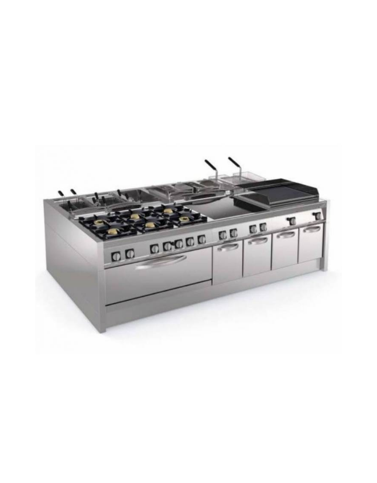 Cucina a gas 4 fuochi in acciaio Inox su vano aperto, con piano ermetico - potenza fuochi 2x10kw + 2x11Kw - cm 80x90x90h