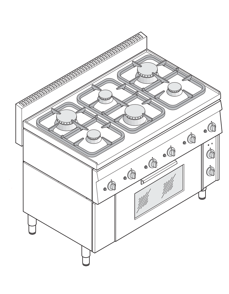 Cucina a gas 6 fuochi, 3x3,3Kw + 3x5,2KW - su forno elettrico ventilato, camera cm 46x41,5x32h - cm 105x65x85h
