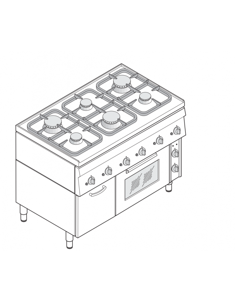 Cucina a gas 6 fuochi, 3x3Kw + 3x3,6KW - su forno elettrico ventilato, camera cm 46x41,5x32h - cm 105x60x85h