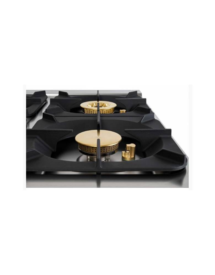 Bruciatori in ghisa ad elevata efficienza fissati ermeticamente al piano e spartifiamma in ottone ad alta durabilità monocorona da 6kW e 10kW e doppia corona da 11kW.