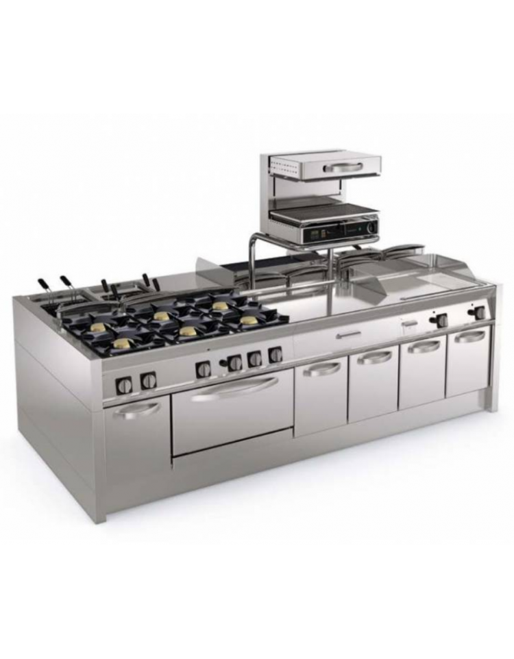 Cucina a gas ermetica 6 fuochi, potenza 6x7,5kw - su forno a gas statico full size - cm 120x70x90h