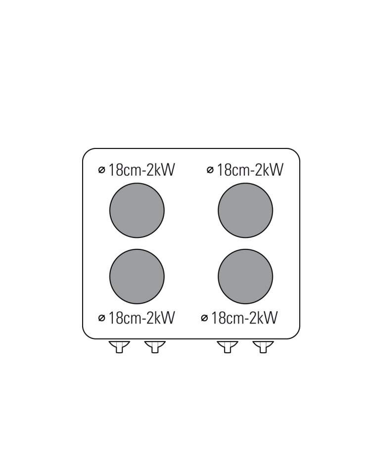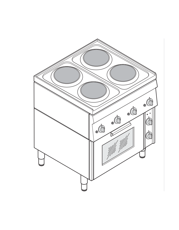 Cucina elettrica 4 piastre ermetiche tonde Ø cm 18, su forno elettrico ventilato - potenza tot. Kw 10,5 trifase - cm 70x60x85h