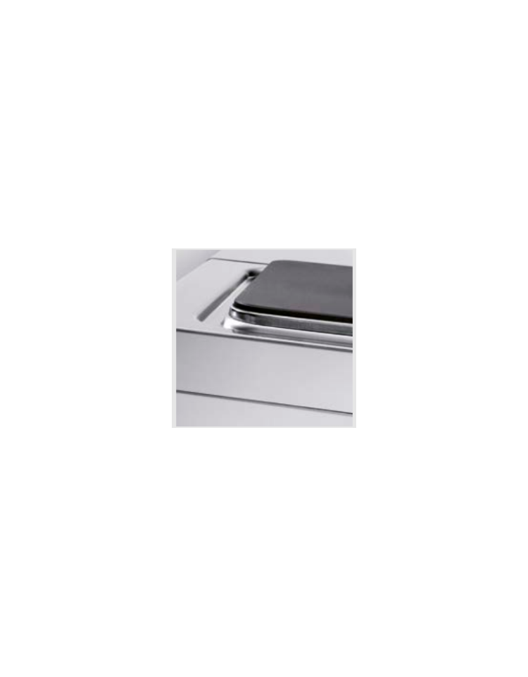Piano di lavoro stampato in profondità per evitare traboccamenti e con angoli arrotondati per la massima igiene e facilità di pulizia.