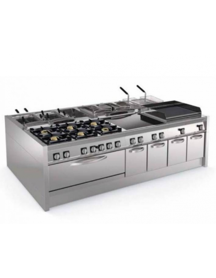 Cucina elettrica 6 piastre ermetiche quadrate, su forno elettrico statico full size - potenza Kw 30,3 trifase - cm 120x90x90h