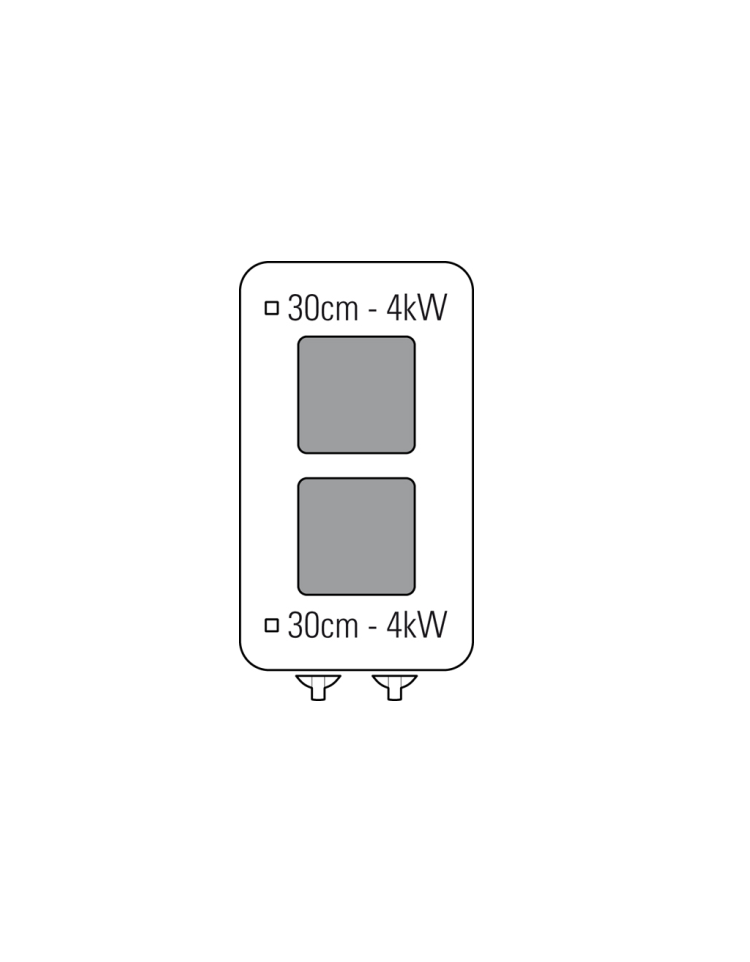 Potenza di 4 kW per ciascuna piastra regolabile su 6 livelli.