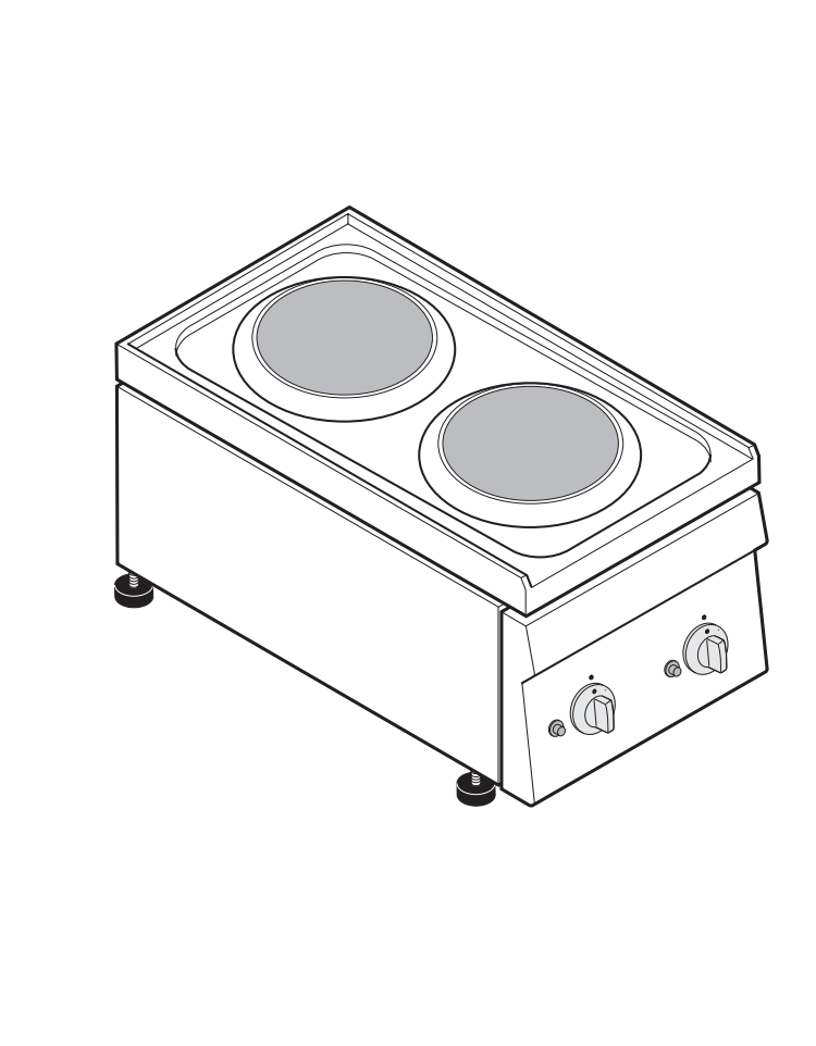 Cucina elettrica da banco in acciaio Inox, 2 piastre ermetiche tonde Ø cm 18 - potenza Kw 4 monofase - cm 35x60x30h