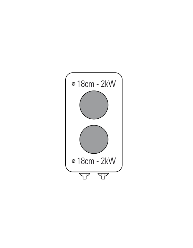 Piano di cottura elettrico, versione top da 35 cm, con 2 piastre tonde in ghisa diametro 18 cm.