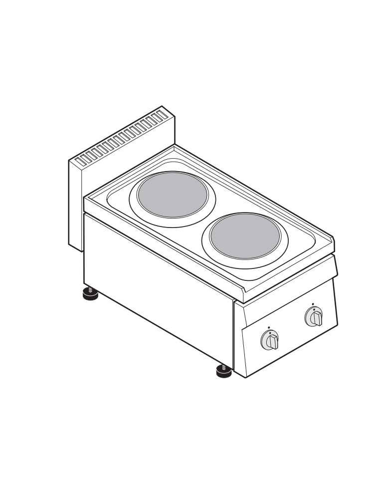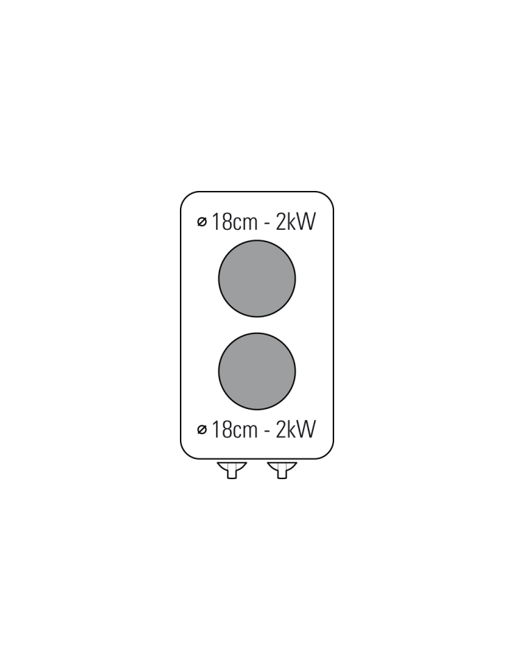 Piano di cottura elettrico, versione top da 35 cm, con 2 piastre tonde in ghisa diametro 18 cm.