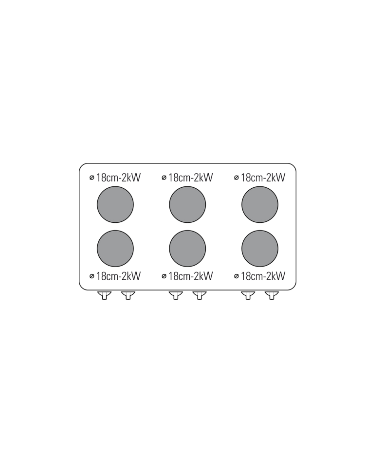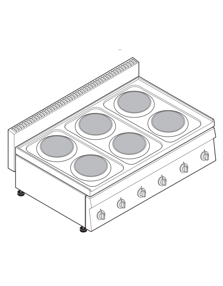 Piano di cottura elettrico, versione top da 35 cm, con 6 piastre tonde in ghisa diametro 18 cm.
