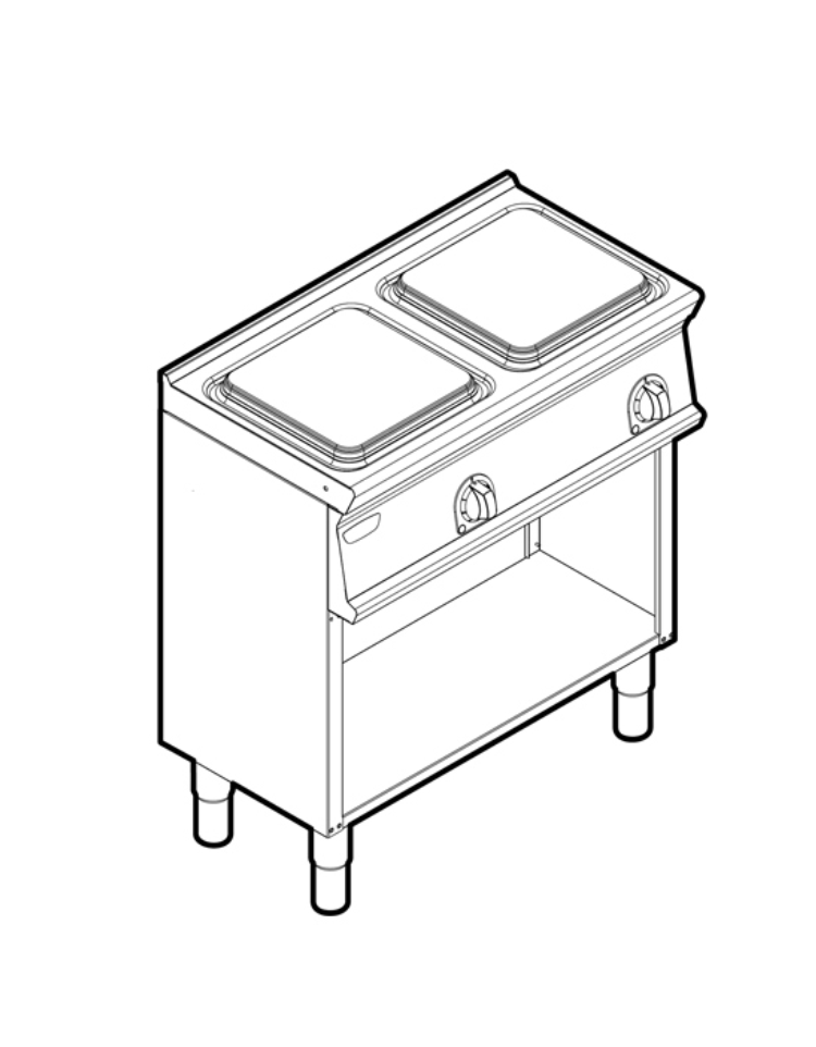 Piano di cottura elettrico freestanding con 2 piastre quadrate su vano aperto da 80x45 cm.