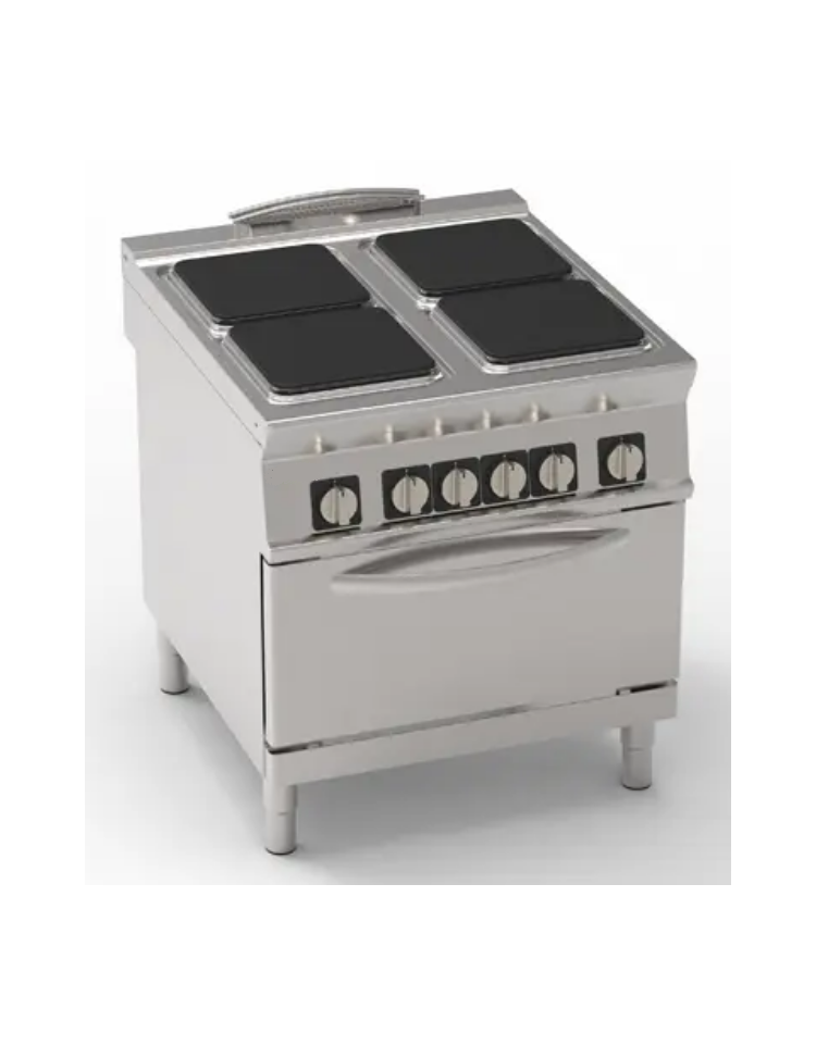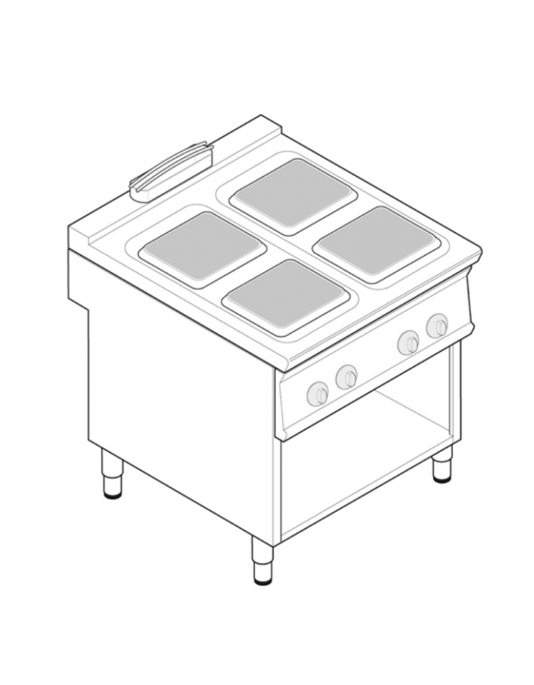 Piano di cottura elettrico freestanding con 4 piastre quadrate su vano aperto da 80 cm.