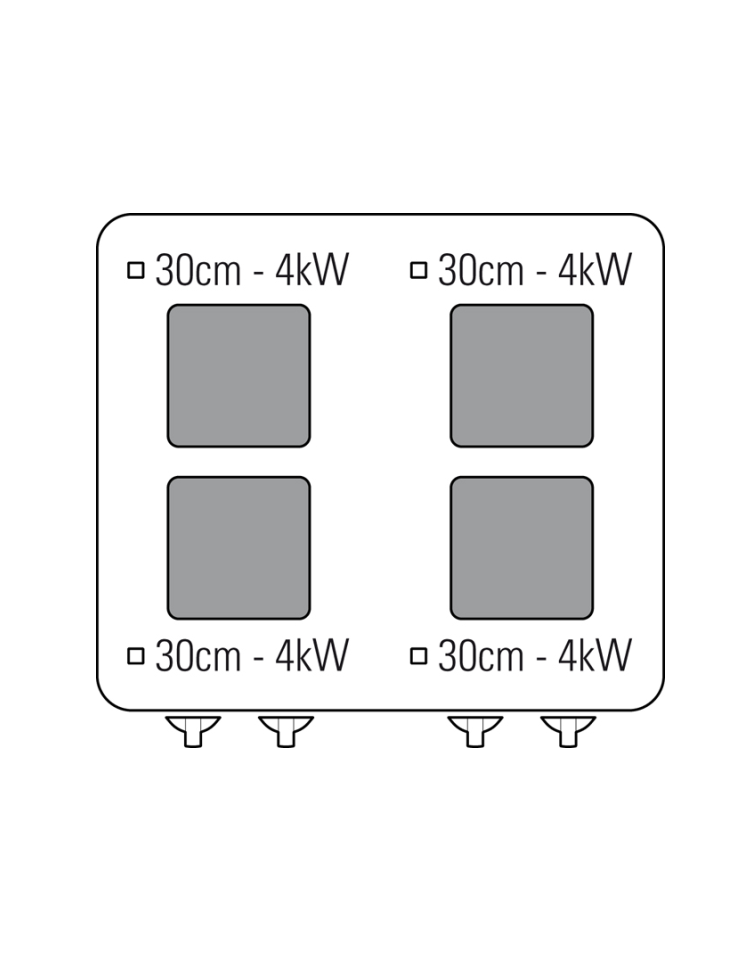 Potenza di 4 kW per ciascuna piastra regolabile su 6 livelli.
