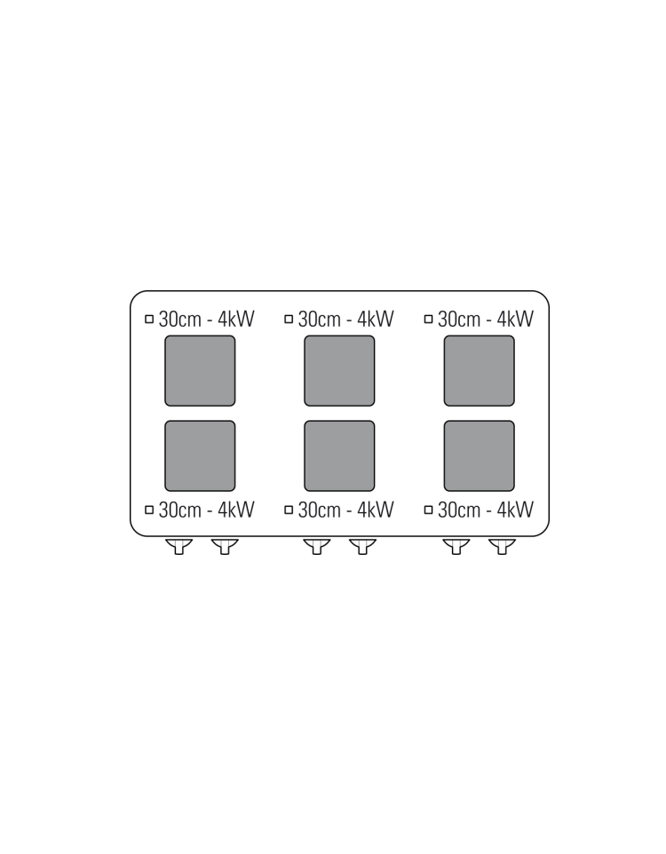 Potenza di 4 kW per ciascuna piastra regolabile su 6 livelli.