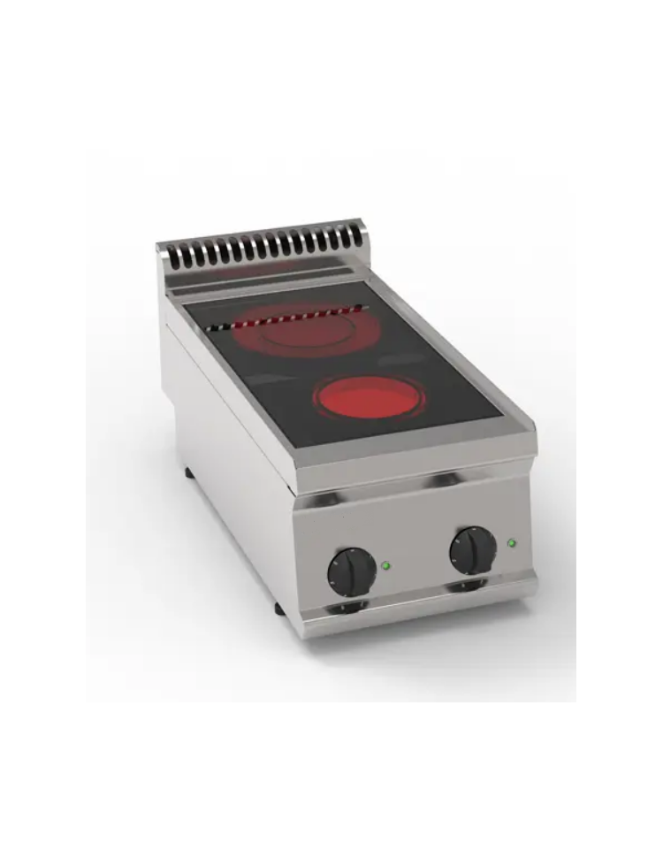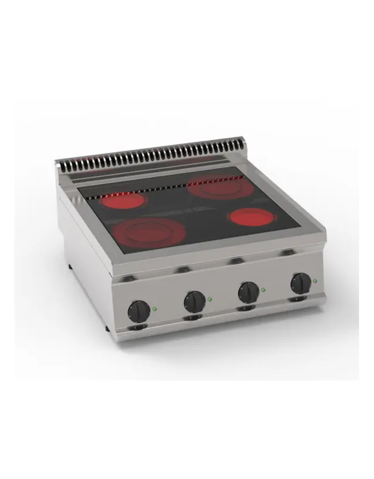 Cucina elettrica in vetroceramica da 70 cm con 4 zone indipendenti di cottura forno elettrico statico GN 2/1.