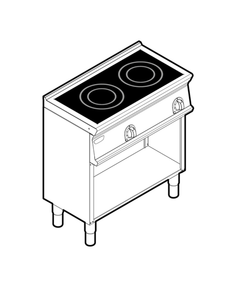 Cucina elettrica su vano aperto, piano cottura in vetroceramica - 2 zone cottura - potenza tot. 6,8 Kw trifase - cm 80x45x90h