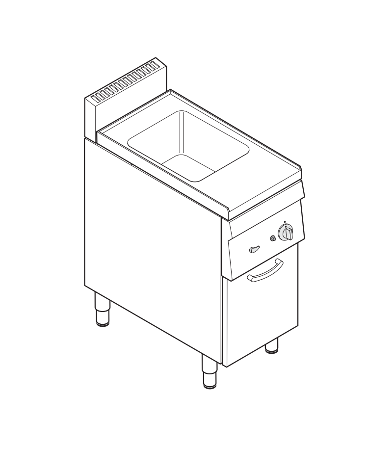 Cuocipasta a gas 23 L GN2/3 freestanding su vano chiuso da 35 cm.