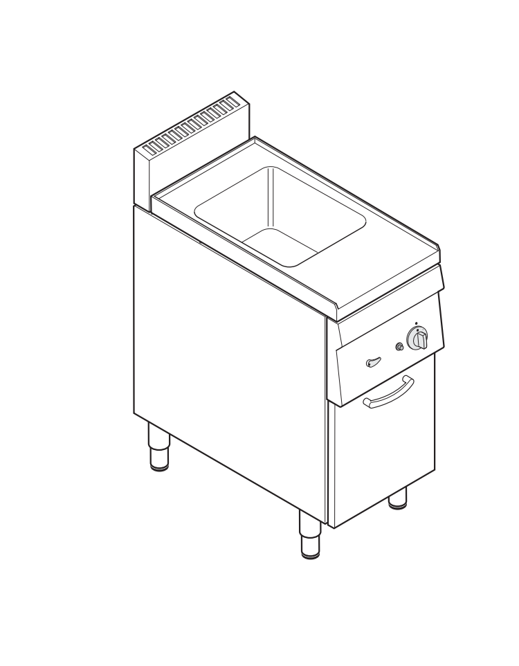 Cuocipasta a gas 23 L GN2/3 freestanding su vano chiuso da 35 cm.