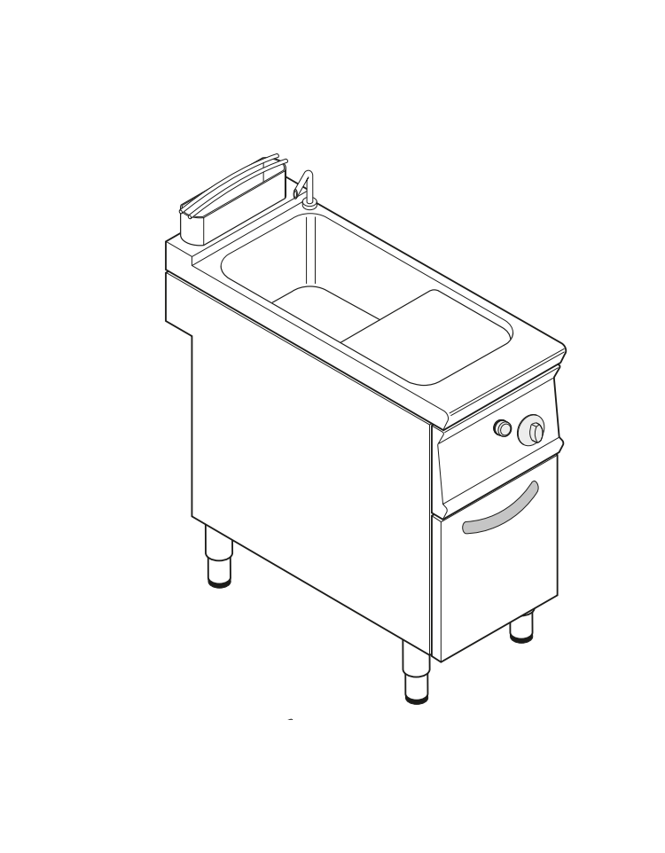 Cuocipasta a gas 24 L GN2/3 freestanding su vano chiuso da 40 cm.