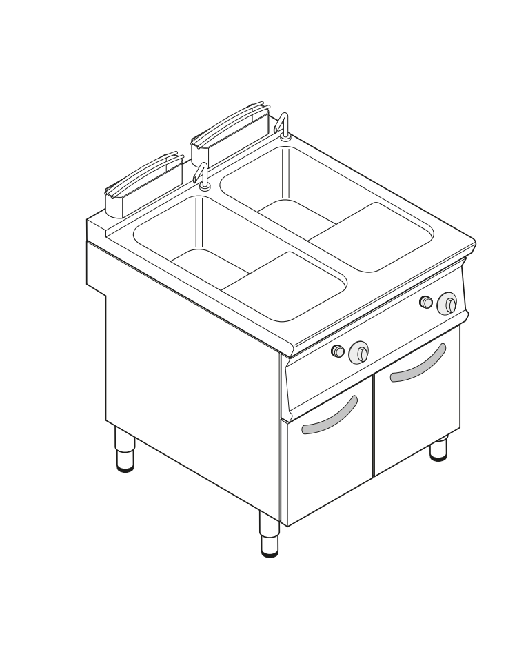 Cuocipasta a gas 40+40 L GN1/1 con 2 vasche freestanding su vano chiuso da 80 cm.