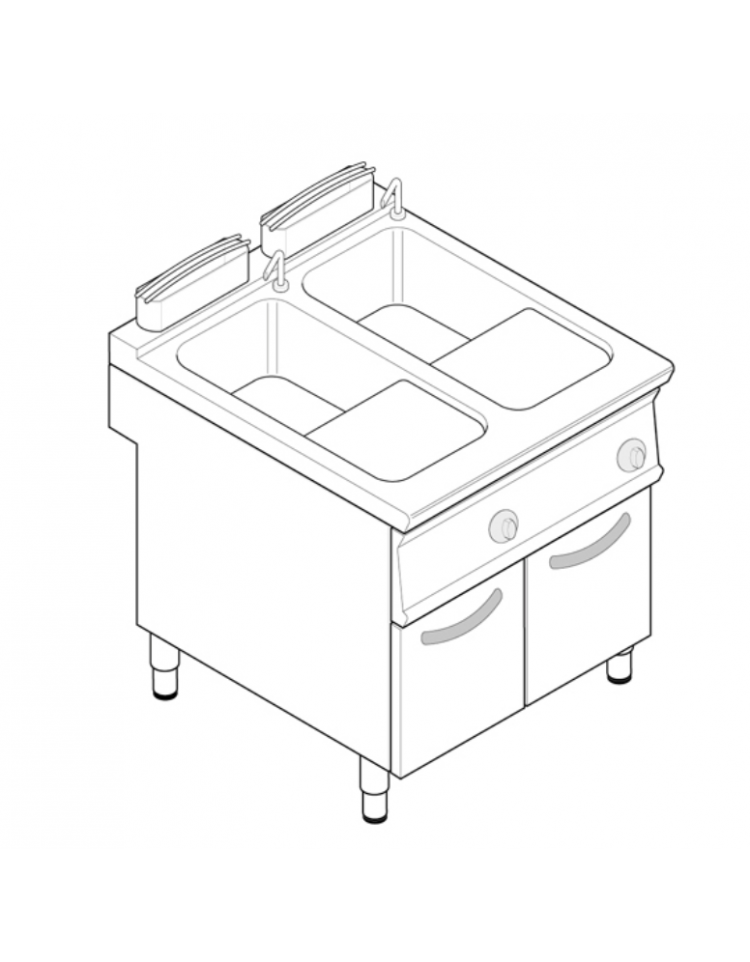 Cuocipasta elettrico 24+24 L GN2/3 con 2 vasche freestanding su vano chiuso da 80 cm.