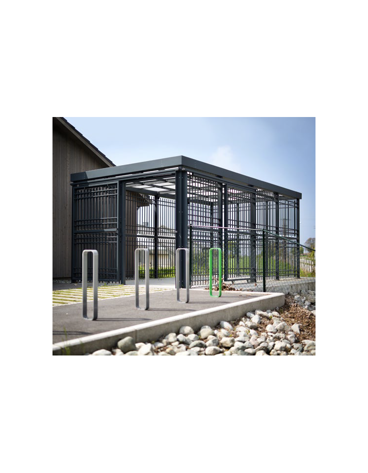 • Pensilina per bici in acciaio zincato e verniciato, con porta apribile manualmente tramite anta scorrevole - cm L.690 Pensilina per bici in acciaio zincato e verniciato, con porta apribile manualmente tramite anta scorrevole - cm L.690