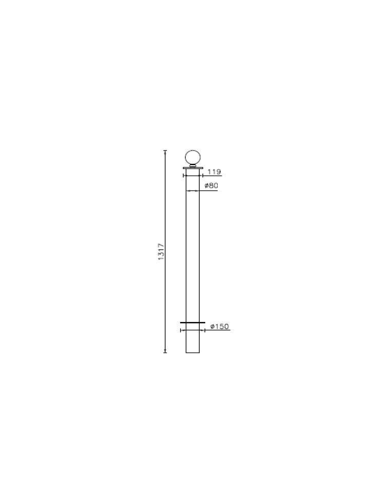 Dissuasore realizzato in tubolare di acciaio Ø80 mm con sovrastante borchia e sfera decorativa in acciaio forgiato. Il fissaggio al suolo è amovibile. Le parti in acciaio sono zincate secondo norme UNI e verniciate a polveri poliestere termoindurenti nelle diverse colorazioni RAL.