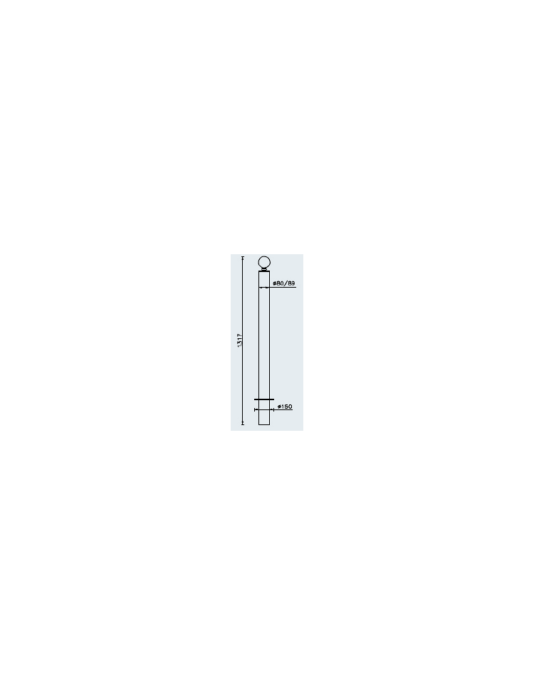 Dissuasore realizzato in tubolare di acciaio Ø90 mm con sovrastante borchia e sfera decorativa in acciaio forgiato. Il fissaggio al suolo è amovibile. Le parti in acciaio sono zincate secondo norme UNI e verniciate a polveri poliestere termoindurenti nelle diverse colorazioni RAL.