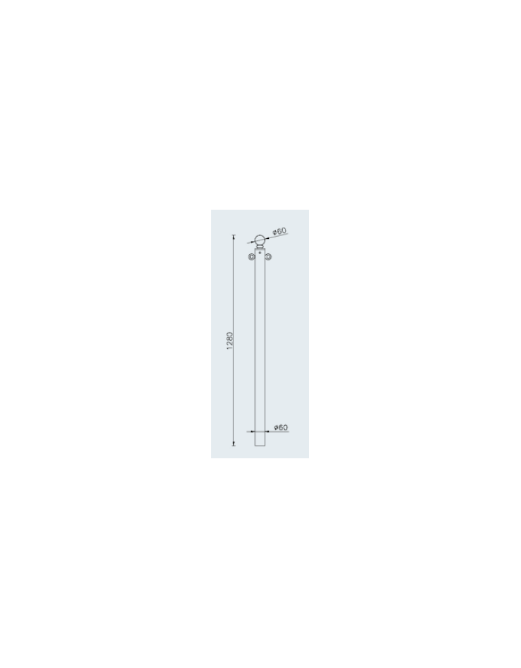 Dissuasore realizzato in tubolare di acciaio Ø60 mm con sovrastante borchia e sfera decorativa in acciaio forgiato. Viene fornito completo di due anelli laterali fissati al tubolare, idonei per l’applicazione di una catena in acciaio, da ordinare separatamente. E’ predisposto per essere inghisato direttamente al suolo. Le parti in acciaio sono zincate a caldo secondo norme UNI e verniciate a polveri poliestere termoindurenti nelle diverse colorazioni RAL.