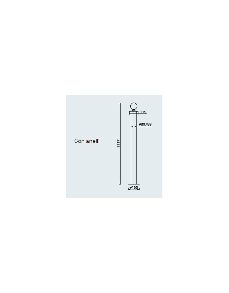 Dissuasore in tubolare di acciaio zincato e verniciato, con piastra e con anelli, da tassellare - cm Ø8x111,7h.