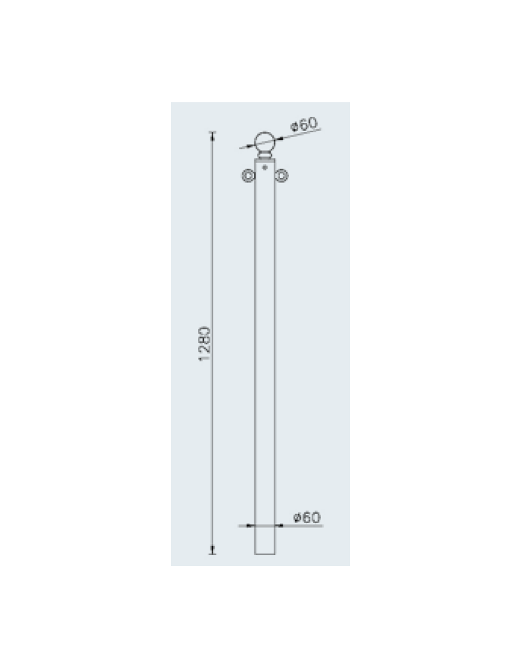 Dissuasore realizzato in tubolare di acciaio Ø60 mm con sovrastante borchia e sfera decorativa in acciaio forgiato. Viene fornito completo di un anello laterale fissato al tubolare, idoneo per l’applicazione di un lucchetto. Le parti in acciaio sono zincate a caldo secondo norme UNI e verniciate a polveri poliestere termoindurenti nelle diverse colorazioni RAL.