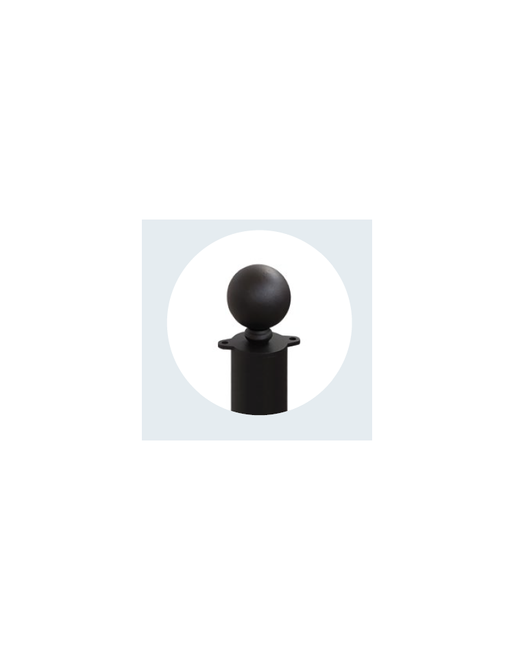 Dissuasore realizzato in tubolare di acciaio Ø80 mm con sovrastante borchia e sfera decorativa in acciaio forgiato. Il fissaggio al suolo è da inghisare. Le parti in acciaio sono zincate secondo norme UNI e verniciate a polveri poliestere termoindurenti nelle diverse colorazioni RAL.