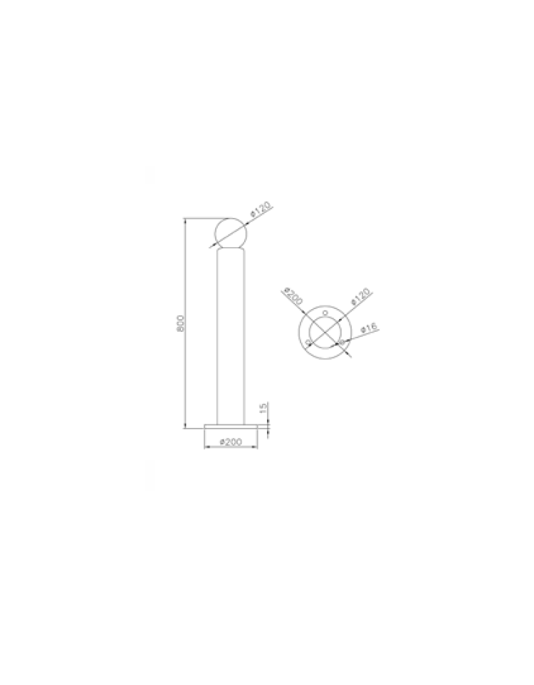Dissuasore realizzato in tubolare di acciaio zincato e verniciato. Il fissaggio al suolo avviene con piastra base tonda provvista di n°3 fori tramite tasselli ad espansione. Tutte le parti in acciaio sono zincate secondo norme UNI e verniciate a polveri poliestere termoindurenti nelle diverse colorazioni RAL.