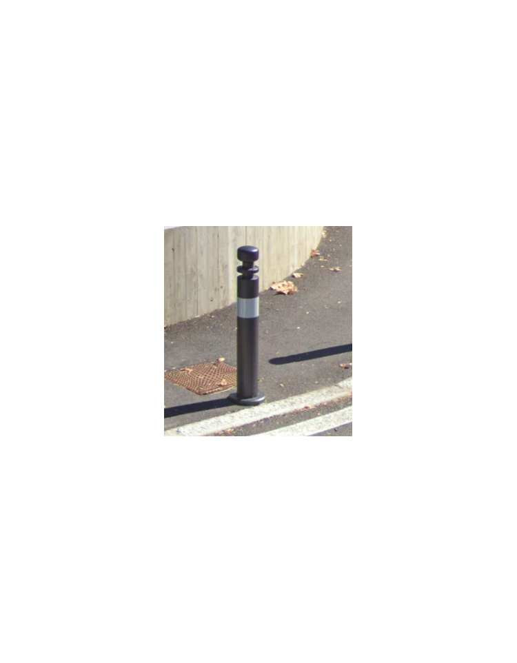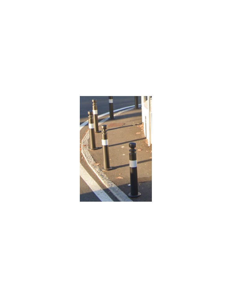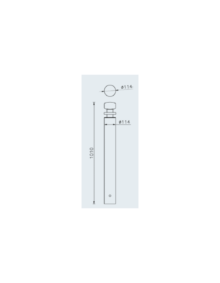 Dissuasore realizzato in tubolare di acciaio Ø114 mm con inserto in tubolare dove è fissata una piastra più decoro superiore che riprende. Tutte le parti in acciaio sono zincate e verniciate a polveri poliestere termoindurenti nelle diverse colorazioni RAL.