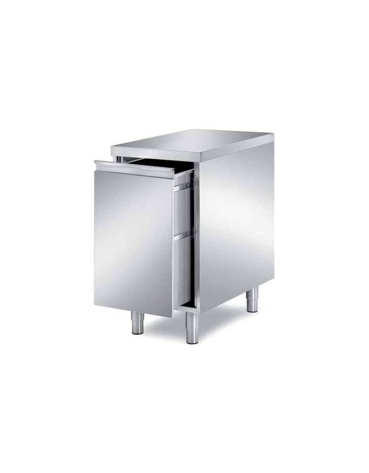 Elemento neutro con cassettone estraibile in acciaio inox AISI 304, con ripiano e alzatina - Dimensioni mm 450x700x850h