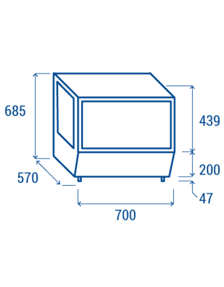Espositore refrigerato da banco, vetro quadrato con cornice nero e basamento inox - ventilato +1/+12°C - cm 70x57x68,5h