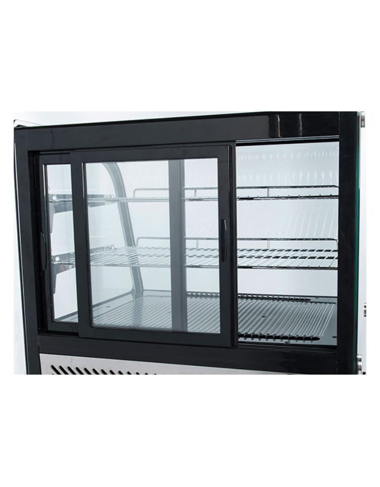 Questa vetrina refrigerata da banco in colore nero ed acciaio, equipaggiata con luci LED e vetro anticondensa, è stata ideata per l’esposizione di qualsiasi alimento meriti la giusta visibilità sul tuo bancone.