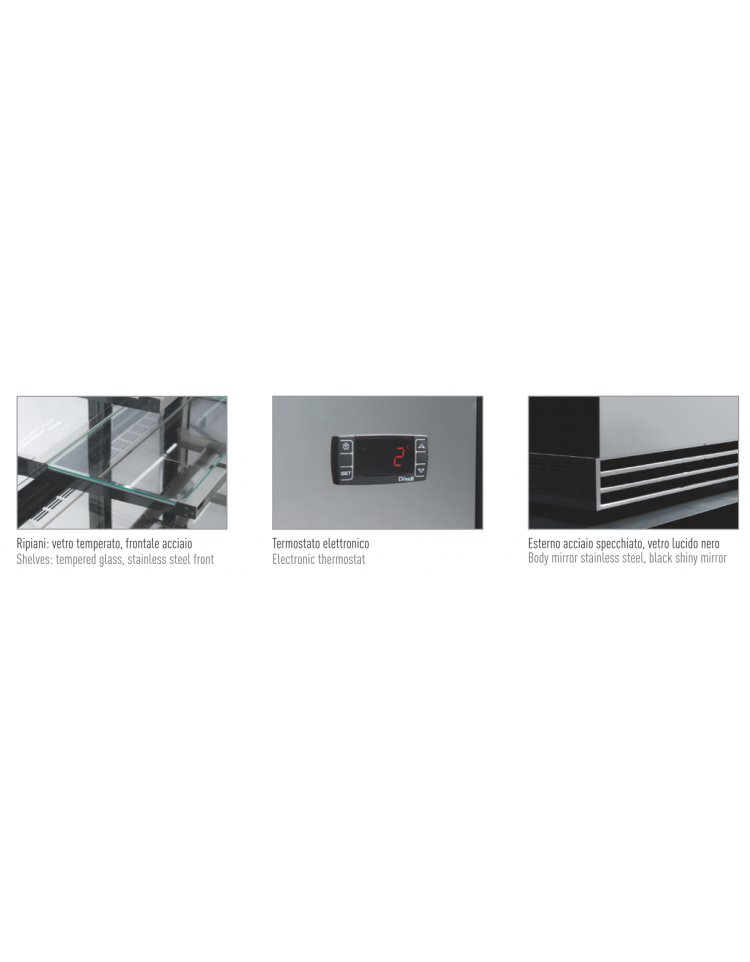 Espositore vetrina refrigerata pasticceria con basamento inox -N°2 Ripiani- Refrigerazione ventilata +2/+10°C - cm 150x74x120h