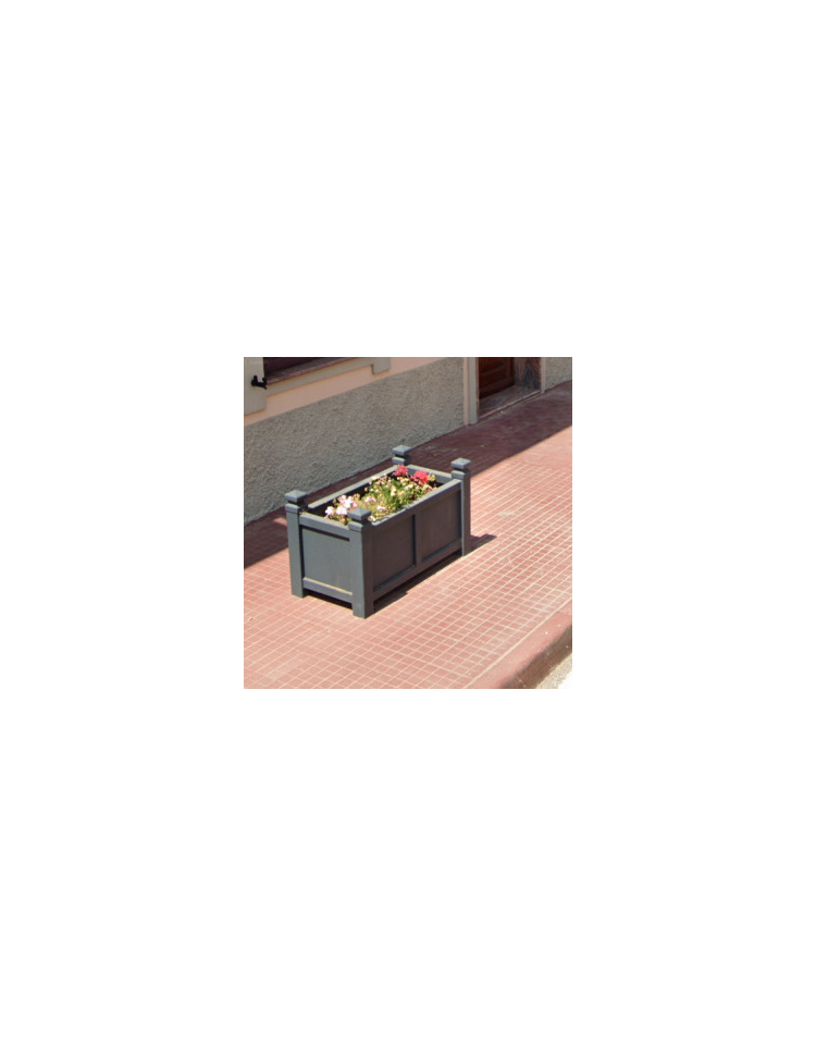 Fioriera composta da sostegni in tubolare quadro con sovrastanti decori a forma rettangolare ricavati da torneria e traversi in tubo quadro. Pannellatura laterale e di fondo realizzata in lamiera. Tutte le parti metalliche sono zincate secondo le normative UNI e verniciate a polveri poliestere termoindurenti secondo le colorazioni RAL. La fioriera, grazie al suo design, si integra perfettamente in contesti storici. La finitura antracite ne esalta ulteriormente l’armonia con ambienti dal carattere tradizionale. Può ospitare al suo interno fiori o piccoli arbusti, aggiungendo un tocco naturale all’arredo urbano.