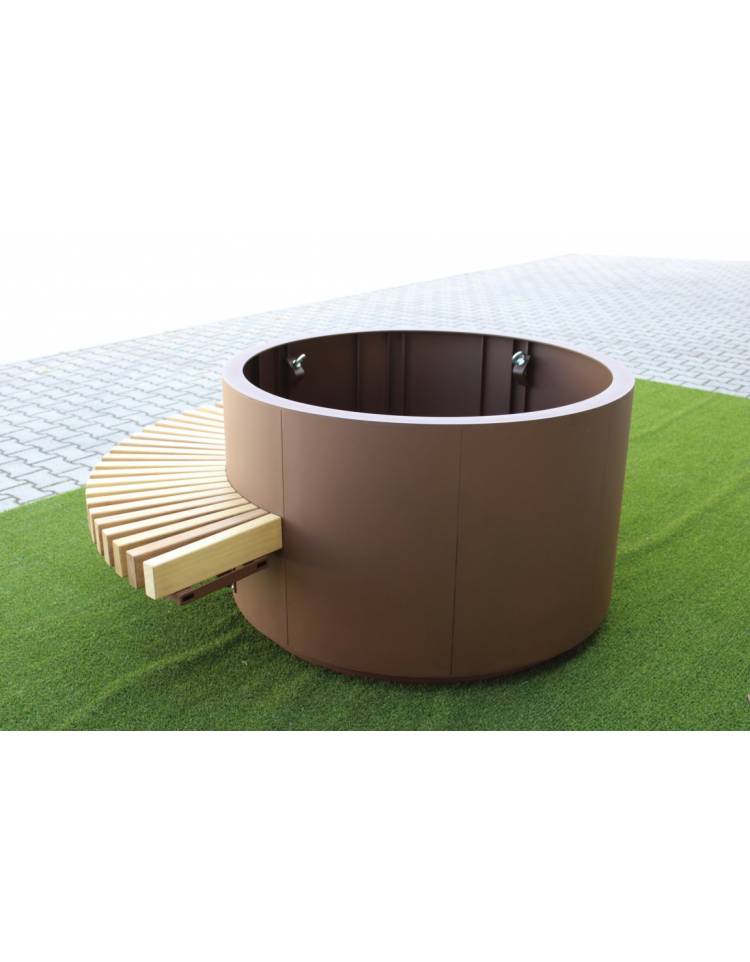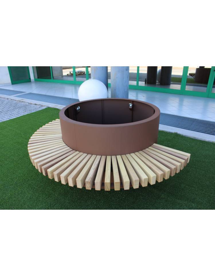 Fioriera circolare con seduta in legno di pregio a 180° e struttura in acciaio zincato e verniciato - cm Ø120x75h