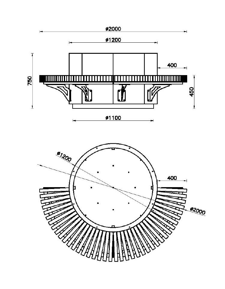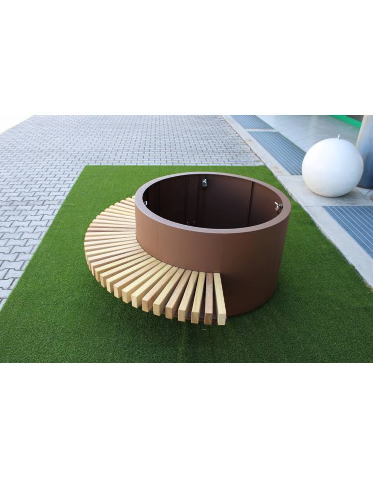 Fioriera circolare con seduta in legno di pregio a 180° e struttura in acciaio zincato e verniciato - cm Ø120x75h