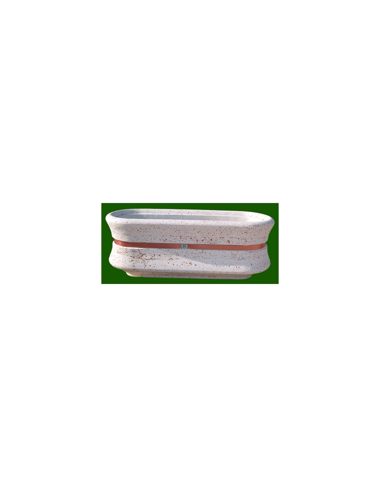 Fioriera ovale in cemento calcestruzzo - colore Bianco pietra - con fascia color rame - cm 130x60x65h - Conforme ai CAM